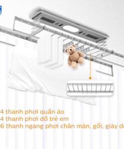 - Thanh phơi quần áo: 2 thanh dài 2,4m; Thanh phơi chăn: 2 thanh dài 2,4m; Thanh phơi đồ trẻ nhỏ: 4 thanh; Thanh ngang: 6 thanh