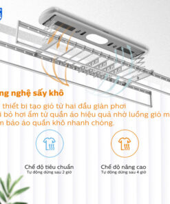 Giàn SDR703 bao gồm 2 chương trình sấy: Sấy gió và sấy nhiệt. Lượng khí và nhiệt được lưu thông đều trong quá trình sấy đảm bảo vẫn tiết kiệm điện năng và đảm bảo quần áo khô đều 2 mặt.
