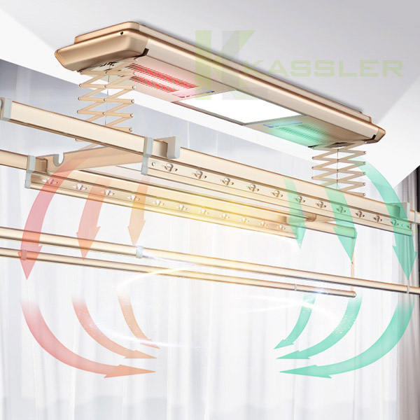 Giàn phơi điện tử Kassler KL-S701 sở hữu hai tính năng sấy, giúp người dùng có thể dễ dàng làm khô quần áo trong mọi điều kiện thời tiết: