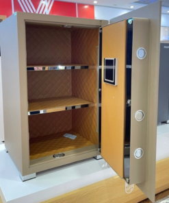 Điểm nổi bật của két sắt này là cấu tạo bản lề chìm và thép đúc nguyên tấm, mang lại độ bền và độ an toàn cao. Nội thất bên trong được chia làm 2 ngăn và được bọc da cao cấp, không chỉ tạo nên sự sang trọng mà còn bảo vệ tốt hơn cho các vật dụng bên trong.